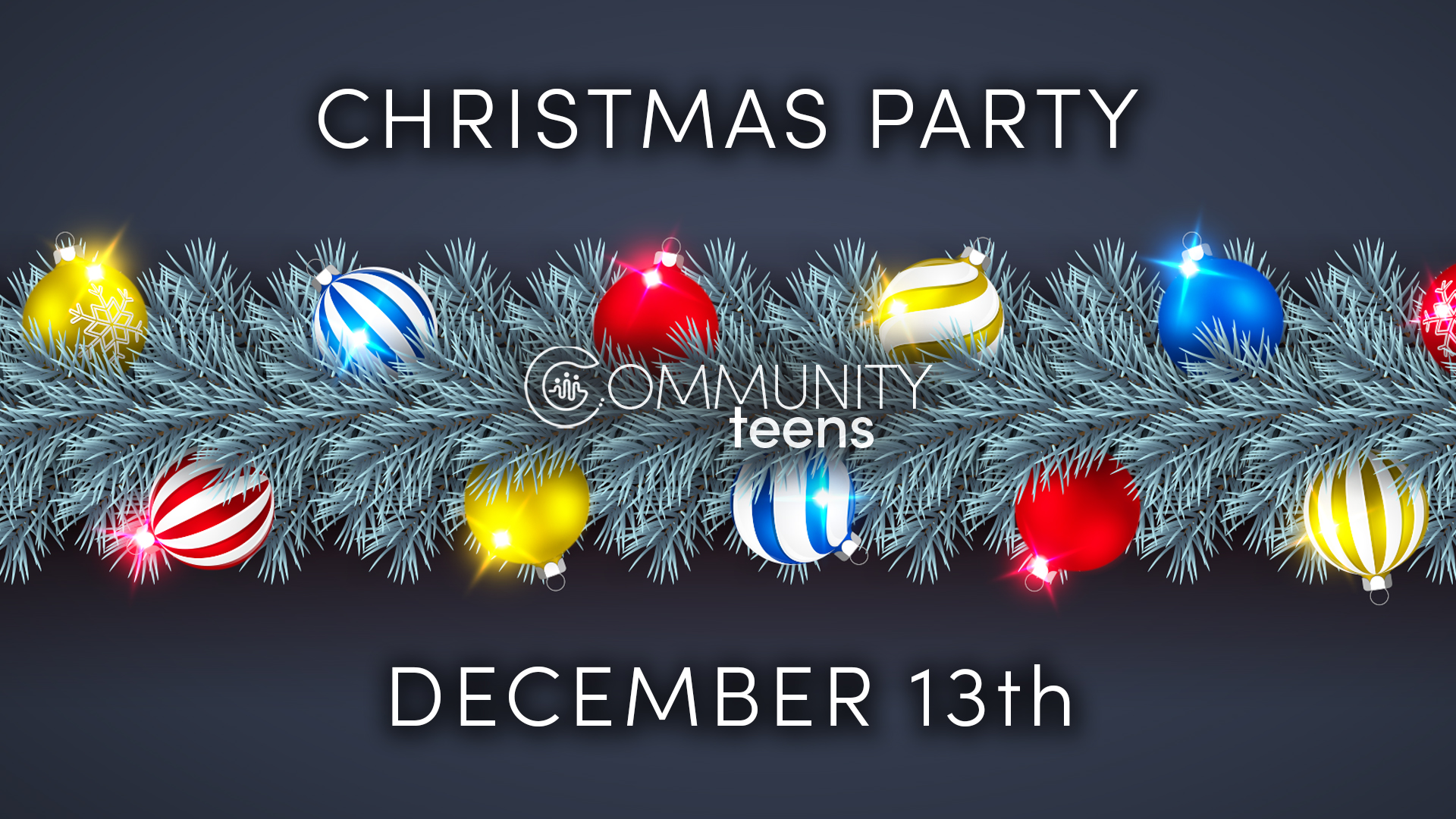Celebrate the season with us at the Community Teens Christmas Party on Saturday, December 13, from 3–6 PM! Enjoy holiday games, fellowship, and dinner provided. Be sure to sign up and bring your friends for a festive afternoon of fun!